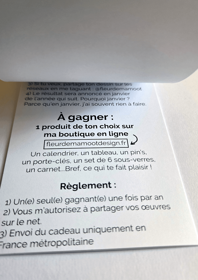 • Un concours de dessin avec un vrai cadeau à gagner : TOUS les produits Fleur de Mamoot jouent le jeu !